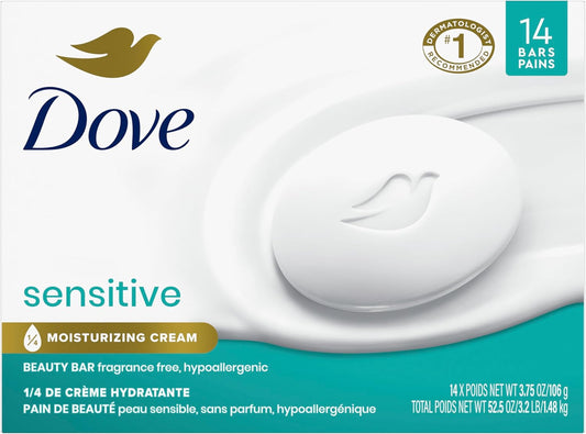 Beauty Bar More Moisturizing than Bar Soap for Softer Skin, Fragrance-Free, Hypoallergenic Beauty Bar Sensitive Skin with Gentle Cleanser 3.75 Oz 14 Bars